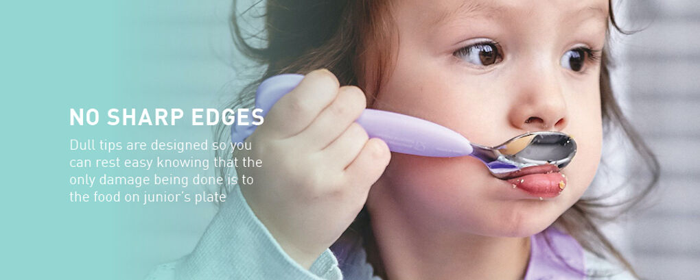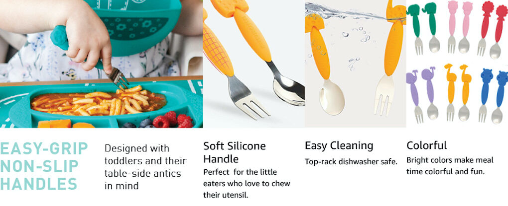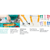 BPA/Phthalate free, Effective utensils without sharp edges, Easy-Grip handle designed for small hands.